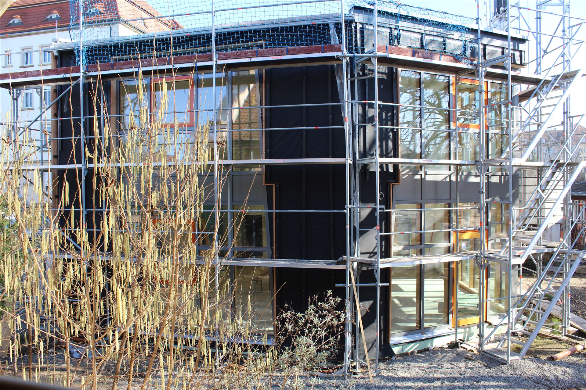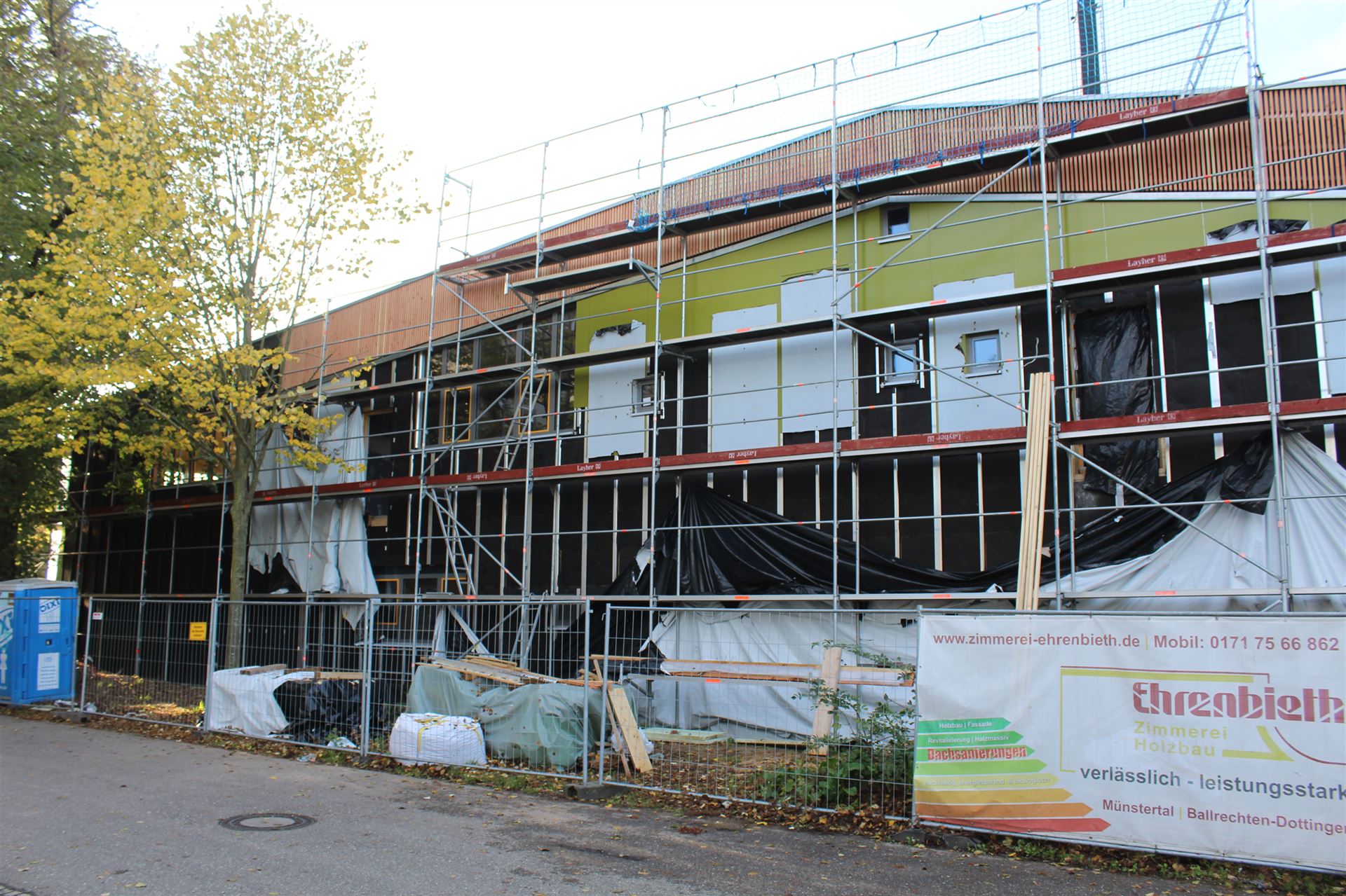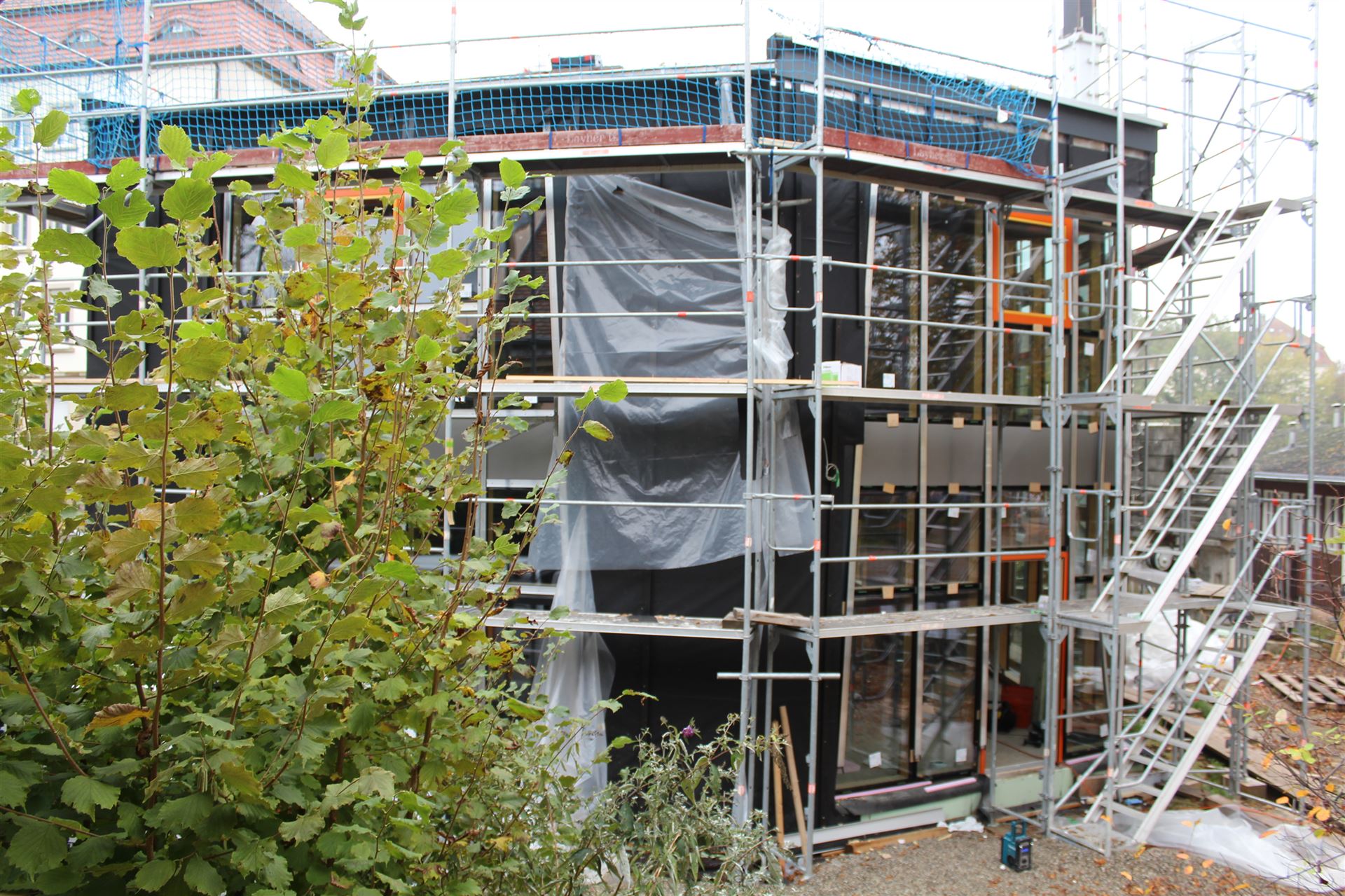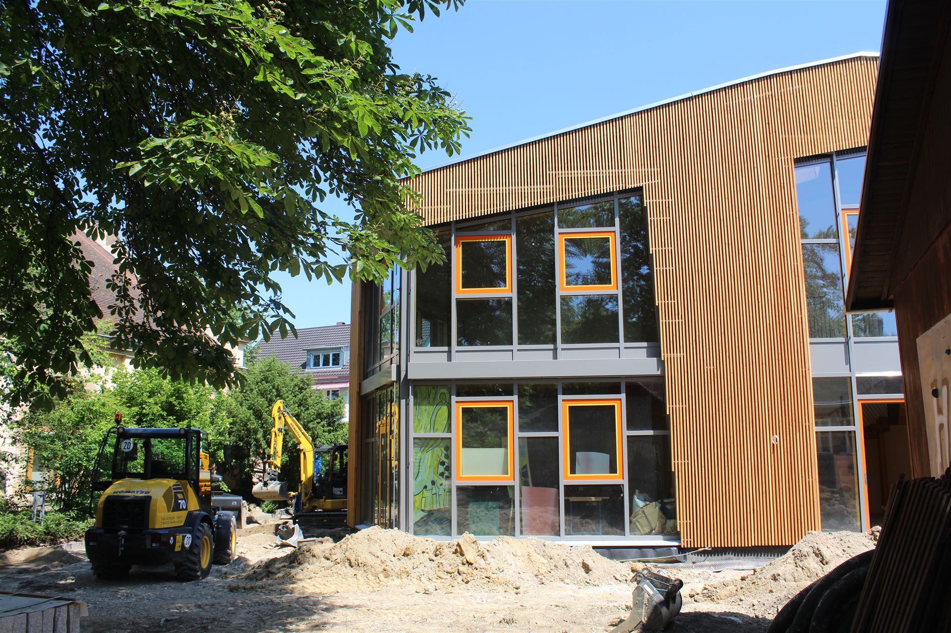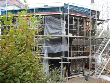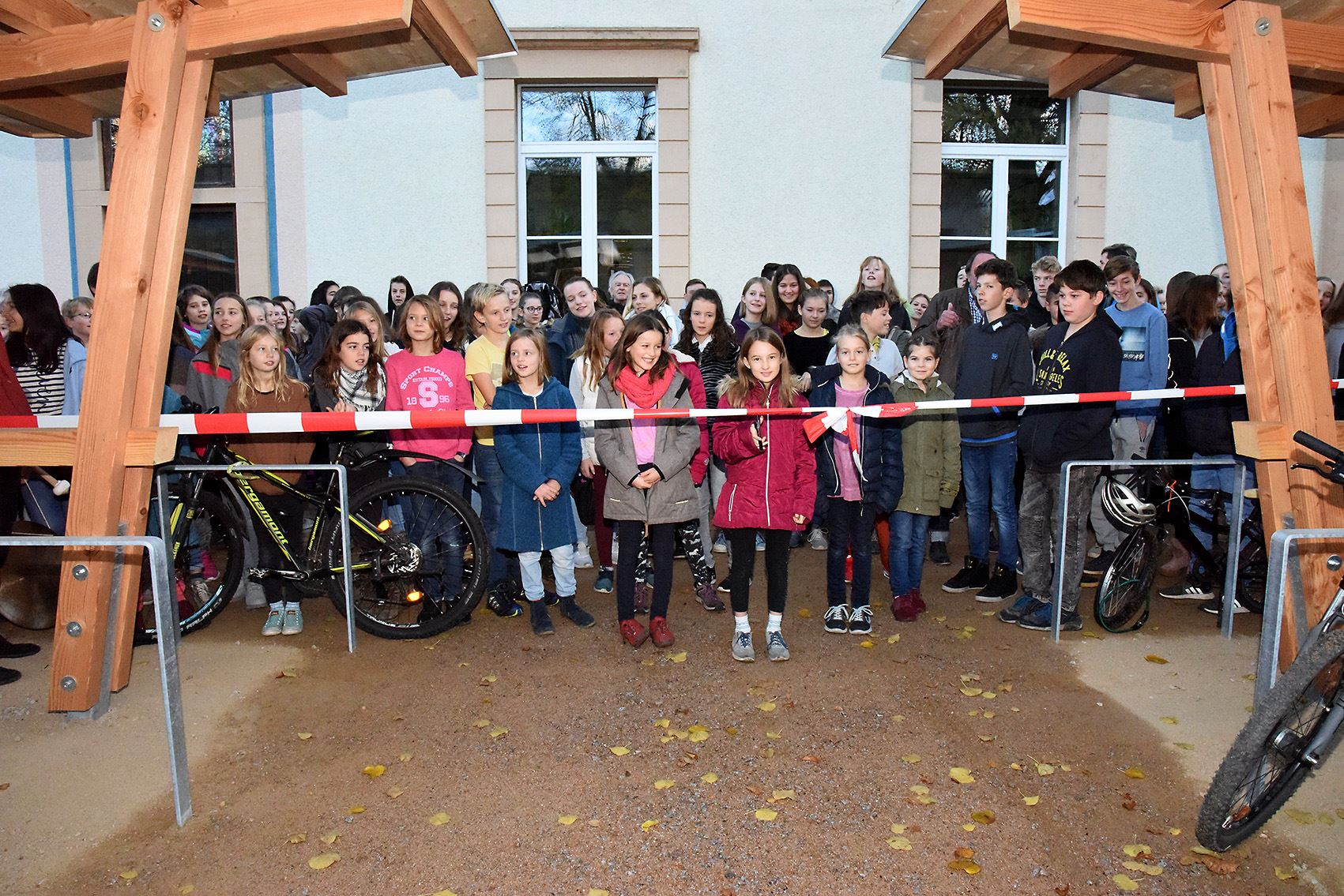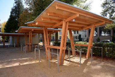 Da zu jedem Schulneubau genügend Fahrradstellplätze vorhanden sein müssen, begann im Sommer 2018 der Startschuss für das erste Bauvorhaben: Die 60 neuen Fahrradstellplätze wurden hinter der Mittelstufe errichtet und nach den Herbstferien feierlich eingeweiht.