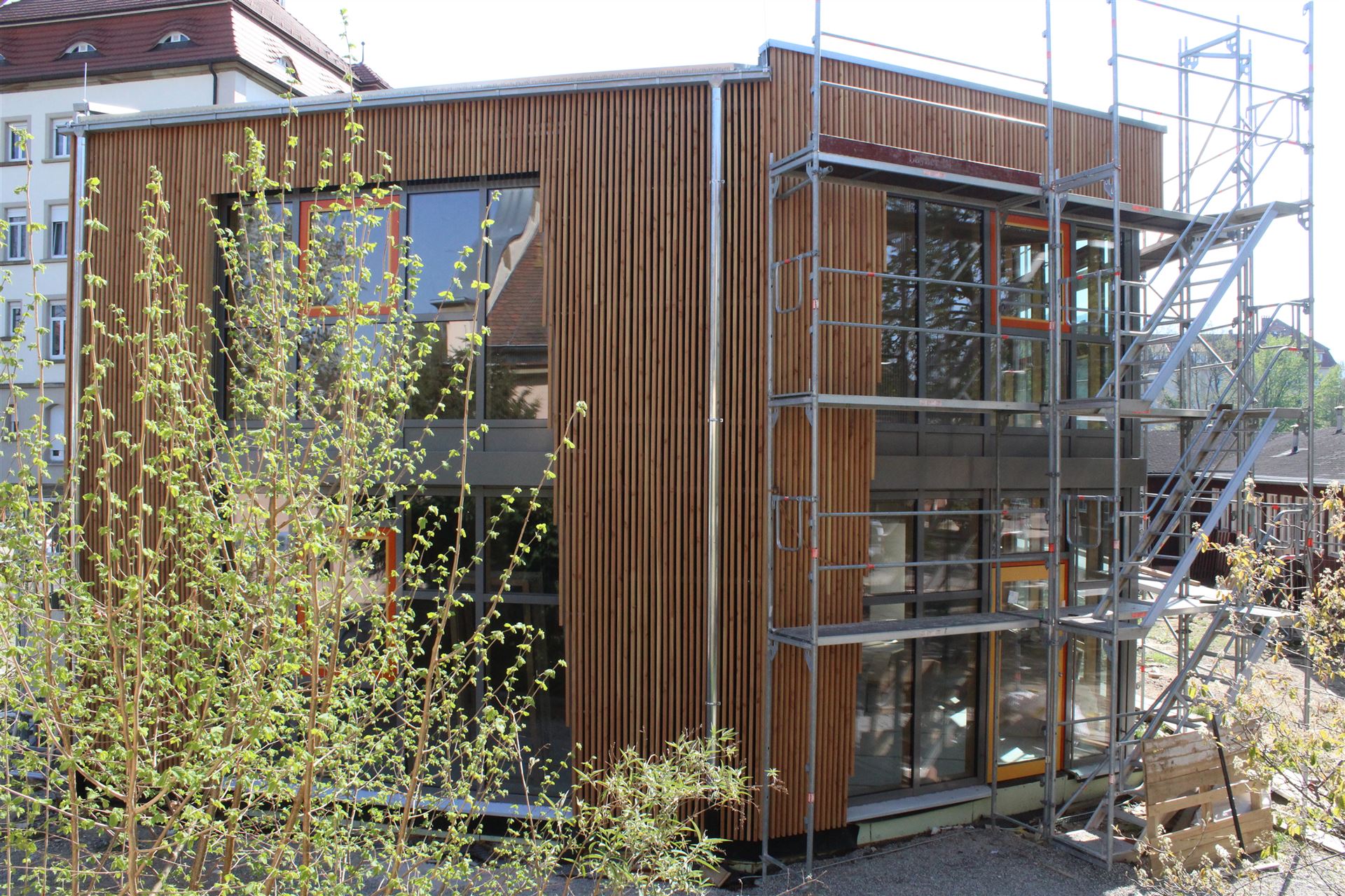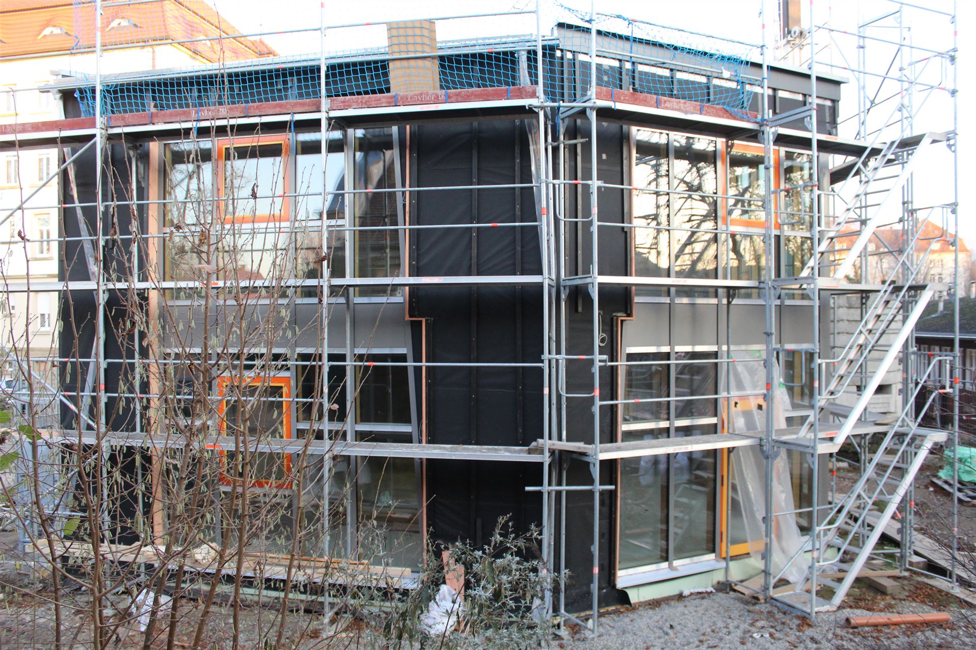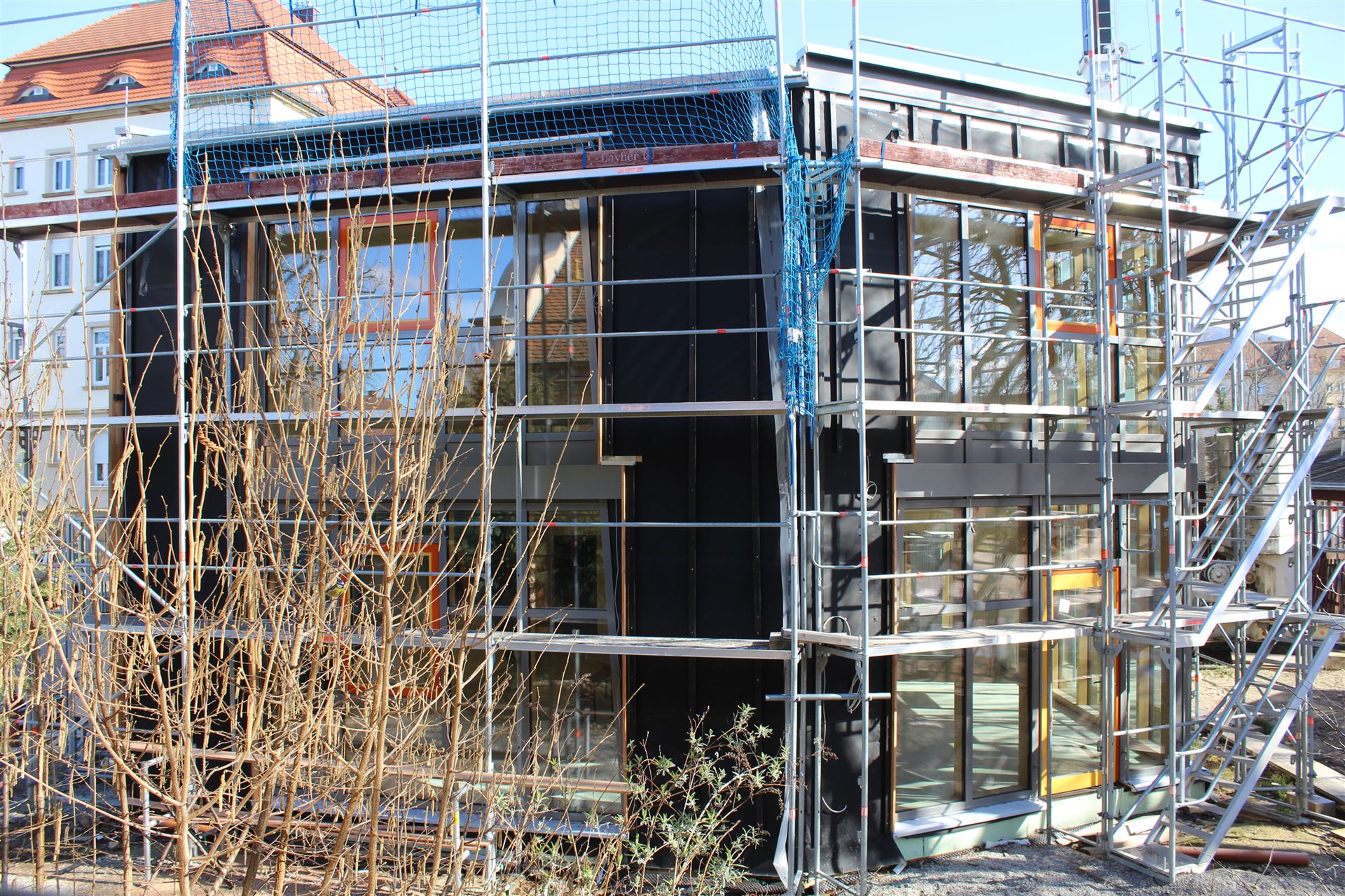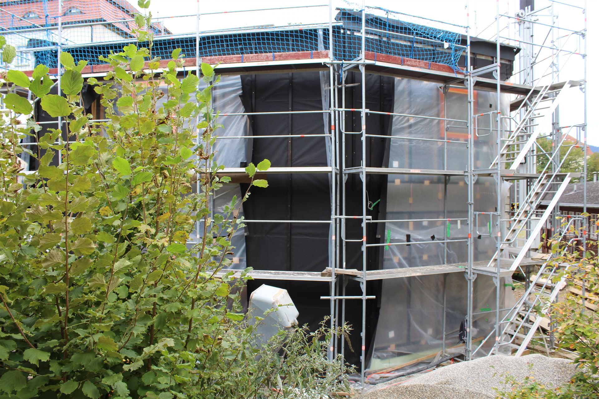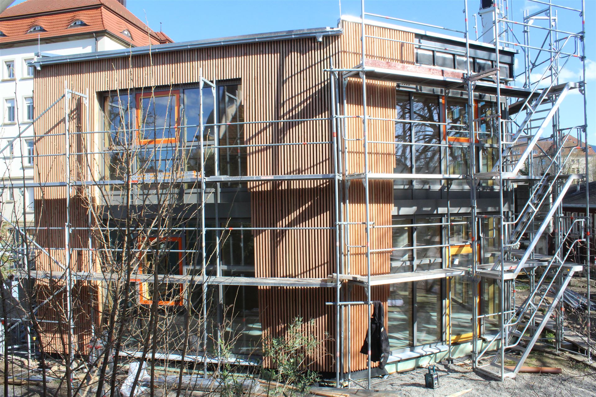 Da zu jedem Schulneubau genügend Fahrradstellplätze vorhanden sein müssen, begann im Sommer 2018 der Startschuss für das erste Bauvorhaben: Die 60 neuen Fahrradstellplätze wurden hinter der Mittelstufe errichtet und nach den Herbstferien feierlich eingeweiht.