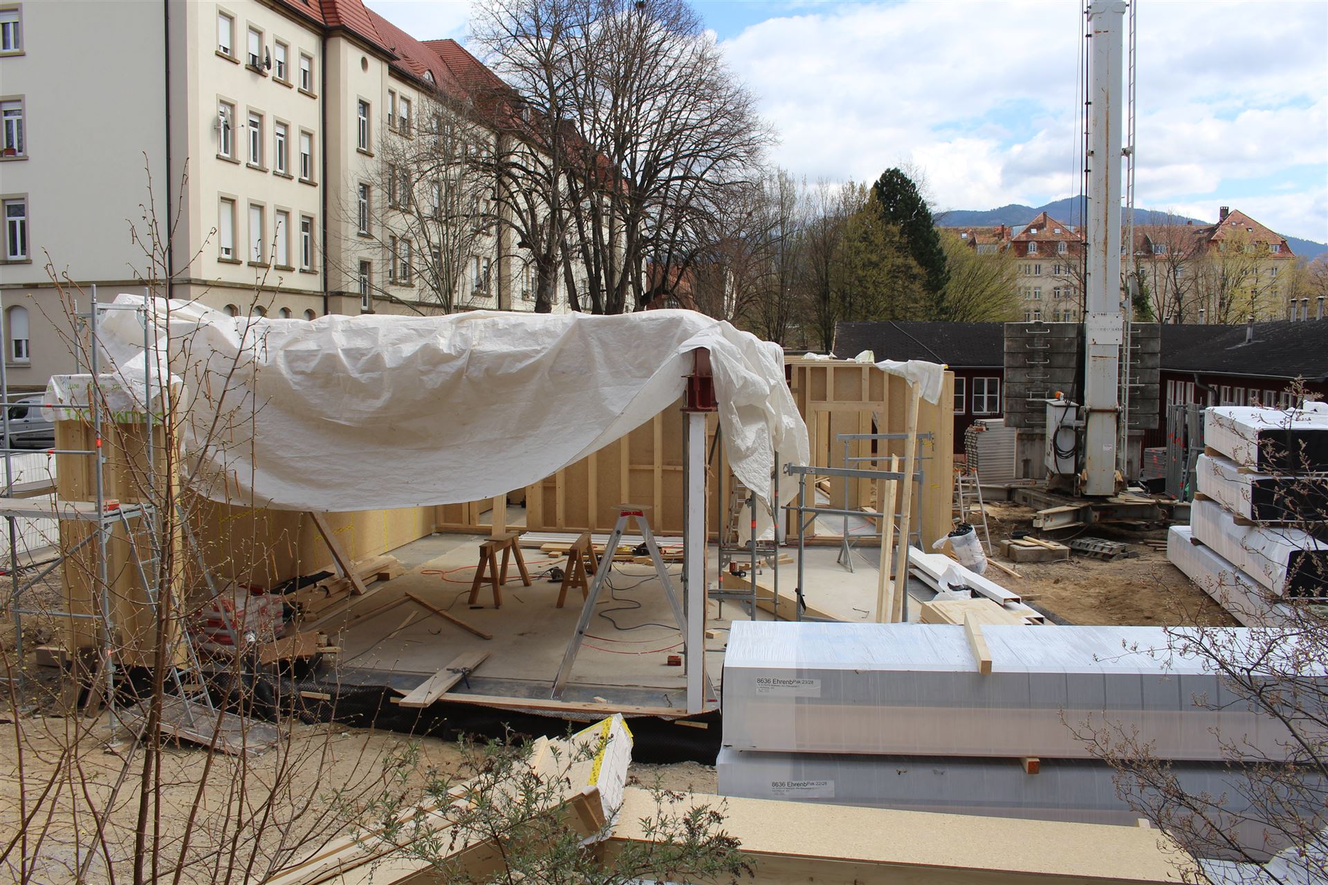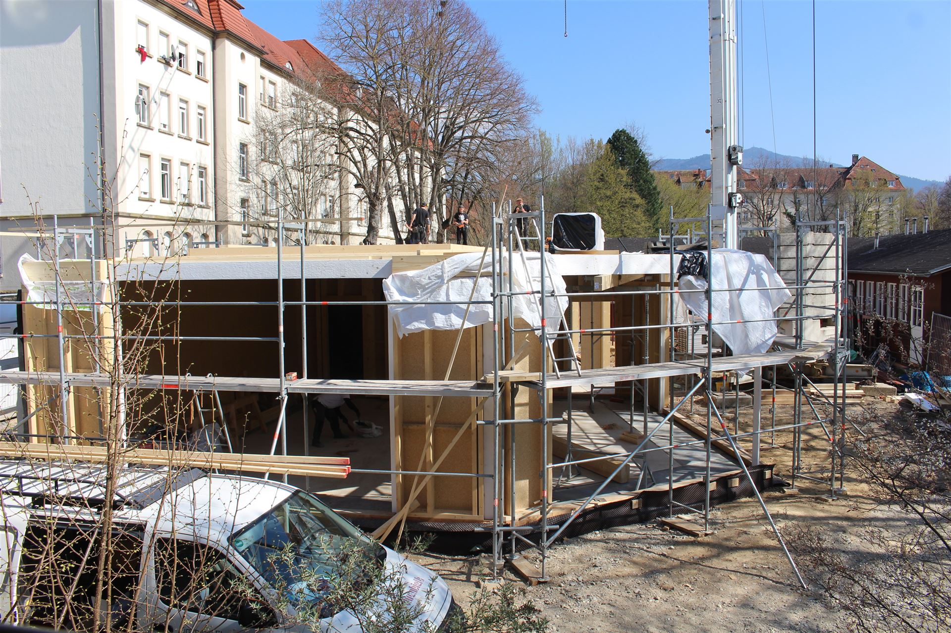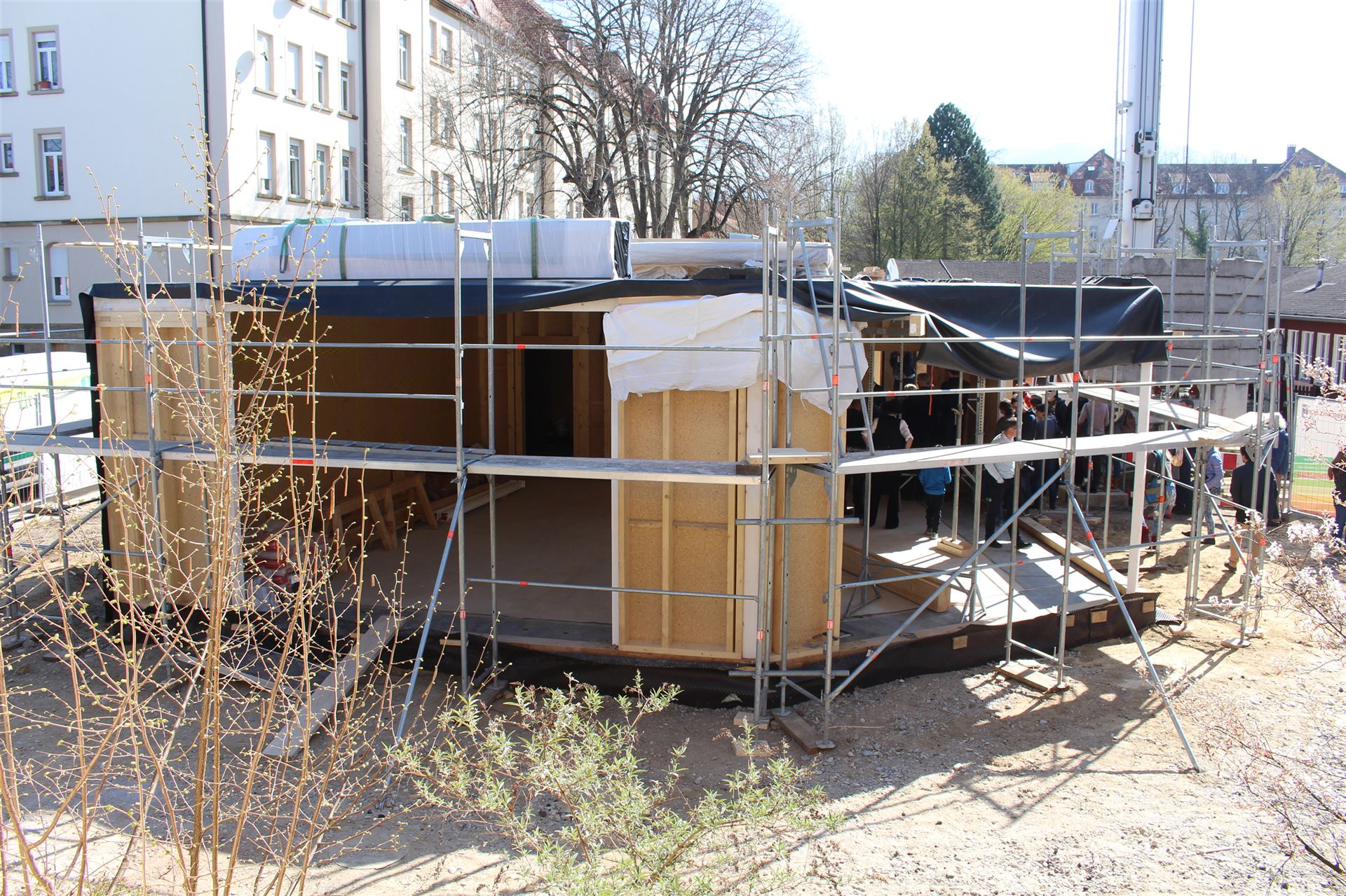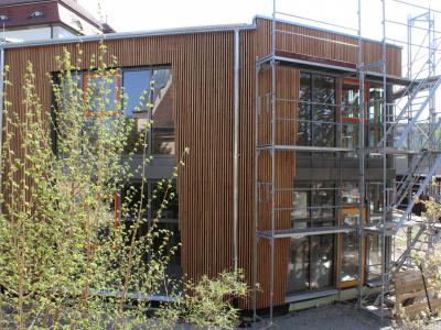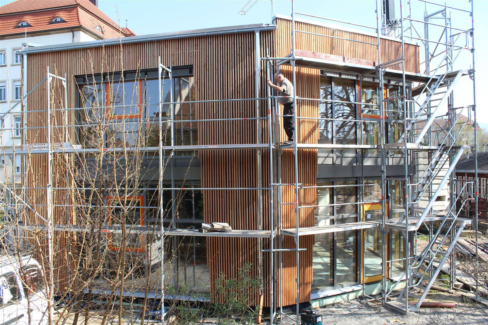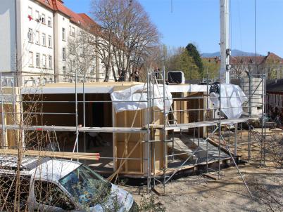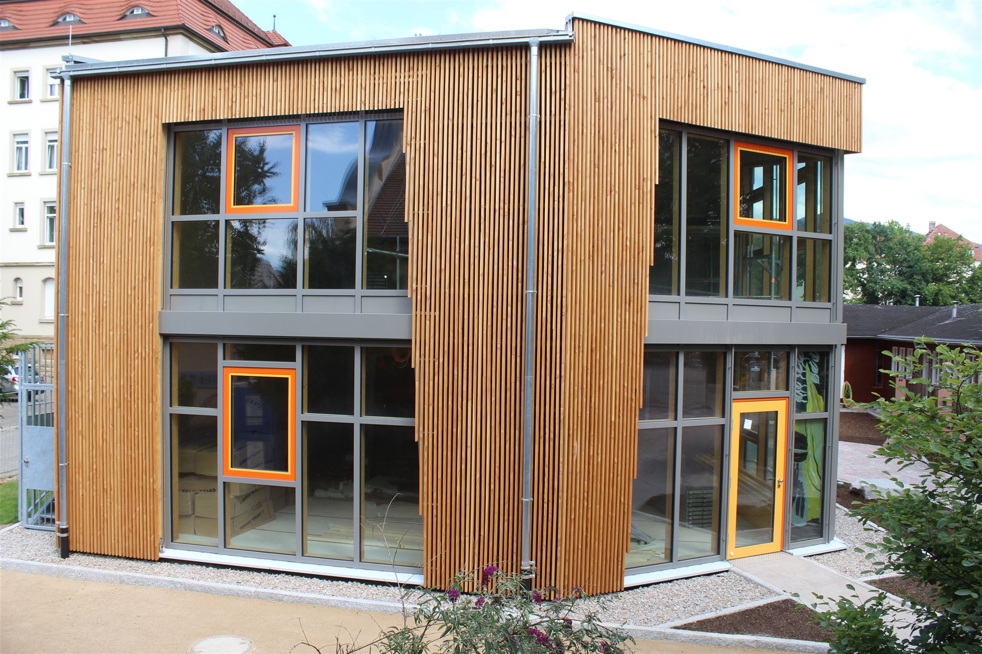 Da zu jedem Schulneubau genügend Fahrradstellplätze vorhanden sein müssen, begann im Sommer 2018 der Startschuss für das erste Bauvorhaben: Die 60 neuen Fahrradstellplätze wurden hinter der Mittelstufe errichtet und nach den Herbstferien feierlich eingeweiht.